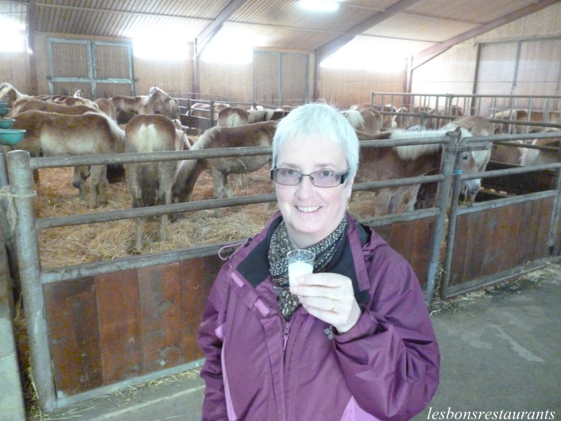 Ce domaine est un centre d'élevage de chevaux Haflingers, mais c'est aussi, dans sa jumenterie ,que l’essentiel du lait de jument frais bio français est produit aujourd’hui en France. Vous pouvez voir ou revoir notre visite du "Domaine de la voie lactée" depuis le début sur ce lien. Cliquez sur les photos pour les agrandir! La visite se termine et, la maîtresse des lieux nous offre une dégustation!