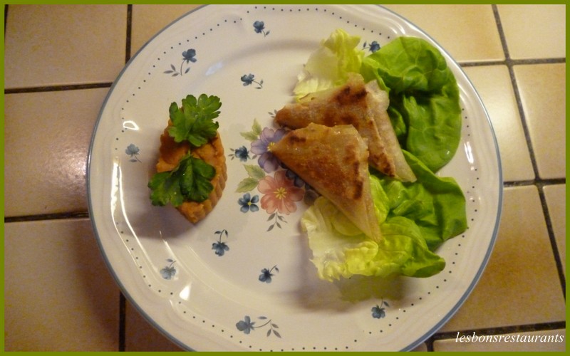 Toutes les recettes de ce menu sont issues de notre blog! Commençons par un apéritif bien gourmand: -Samoussas de thon (voir la recette sur ce lien)