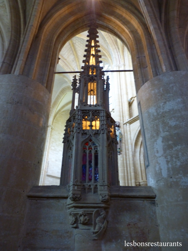 La voici vue du déambulatoire! Nous pouvons toujours admirer ces figurines sculptées au niveau des chapiteaux.