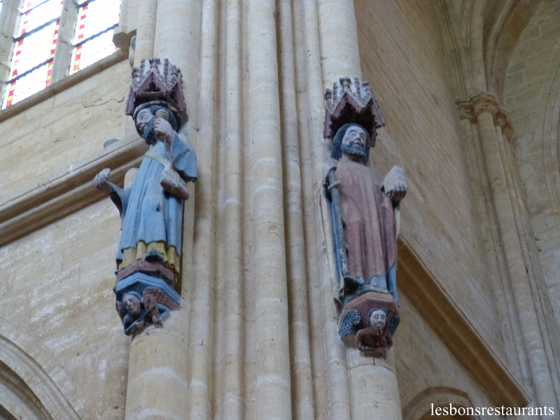 Prenons le temps de nous promener le long des travées! Vous pouvez voir ou revoir notre balade en Lorraine gaumaise depuis le début en cliquant sur ce lien. Cliquez sur les photos pour les agrandir! Quatorze statues sont adossées aux murs et aux piliers du choeur et de la nef de la basilique.