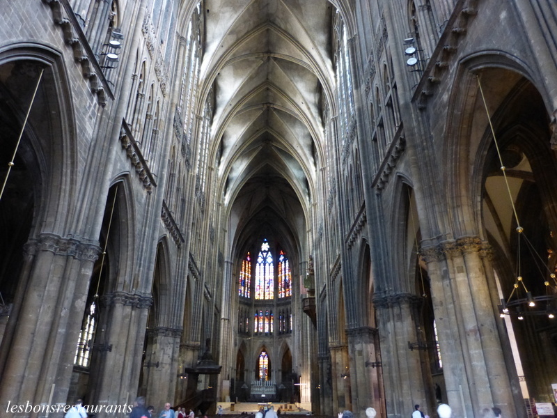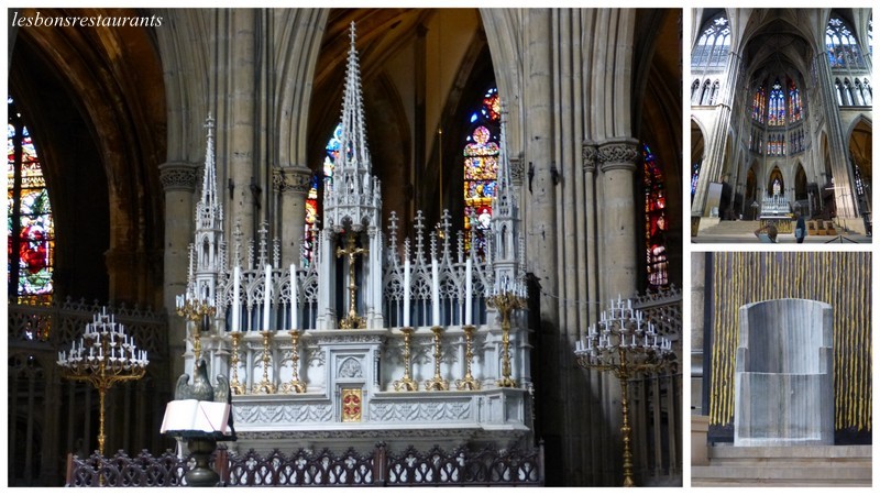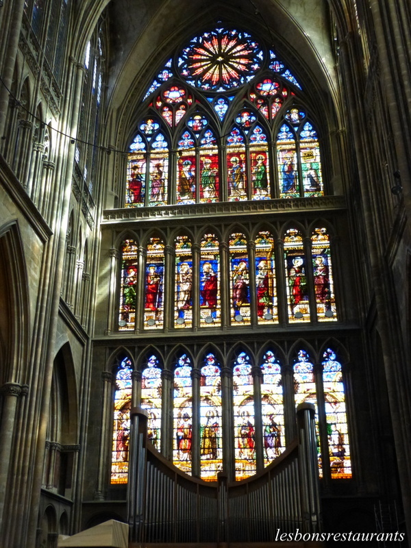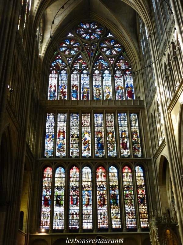 Les vitraux de Jacques Villon ont été installés en 1957. Les peuples de l'Ancienne Alliance et de la Nouvelle Alliance nous révèlent quelque chose de la quête de l'homme, de sa faim et de sa soif matérielle et spirituelle. L'intérieur de la cathédrale Saint-Etienne de Metz impressionne par sa hauteur avec une nef qui fait partie des plus hautes du monde gothique.