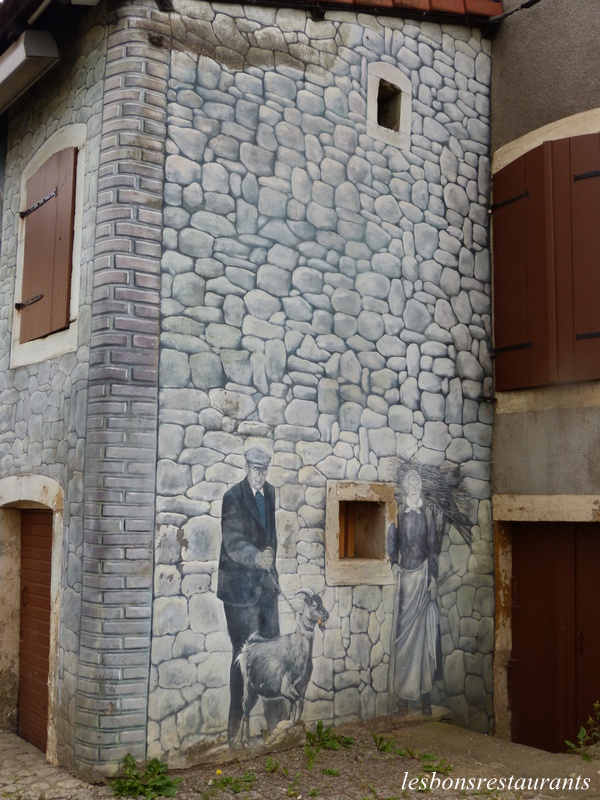 Sur la droite de ce petit appentis, on retrouve un homme qui tient en laisse une chèvre et une femme qui porte sur son dos un chargement de petit bois, très probablement destiné au boulanger.