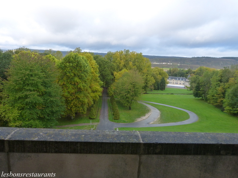 Le balcon de la chapelle supérieure nous permet d'admirer le château et le parc!