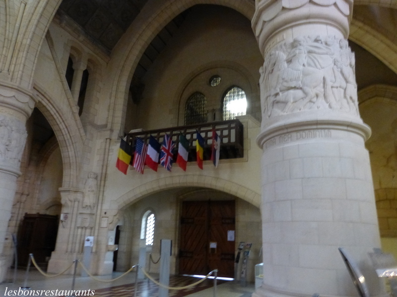 Nous découvrons, jour après jour, ce site tout à fait remarquable....Aujourd'hui, entrons dans la chapelle supérieure! Vous pouvez voir ou revoir notre balade en Champagne depuis le début en cliquant sur ce lien! Cliquez sur les photos pour les agrandir! Le monument en lui-même fait 52 mètres de haut, mais posé au somment d'une colline, c’est à 117 mètres au-dessus de la Marne que l’édifice se dresse.