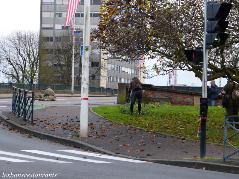 Pour cela, il fallait prendre le pont des Alliés encore tenus par les Allemands! Nous sommes face à la Tour aux Puces (photo1), la mairie étant à gauche! Le pont des alliés se situe face à la mairie (photo 2)! La reconstitution historique de cette manoeuvre a été retransmise sur grand écran et filmée. Daria Lippi, actrice et metteur en scène, a mis en scène un tournage de la prise du pont des Alliés... Des acteurs et des habitants de la région ont enfilé des uniformes pour l'occasion! Tous les véhicules disponibles se sont donnés rendez-vous..... En septembre 1944, un peloton de l'armée américaine pénètre dans Thionville occupée!