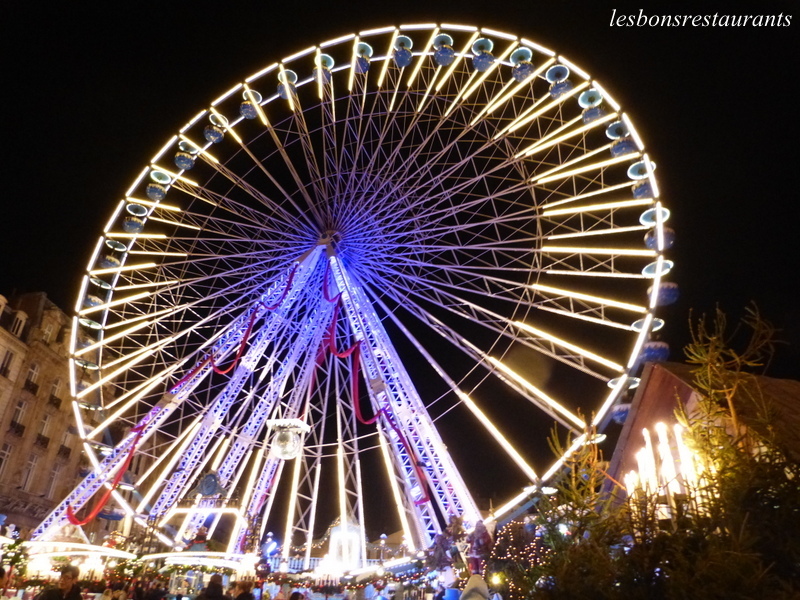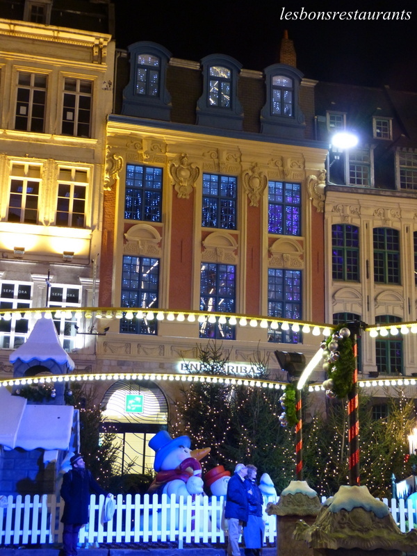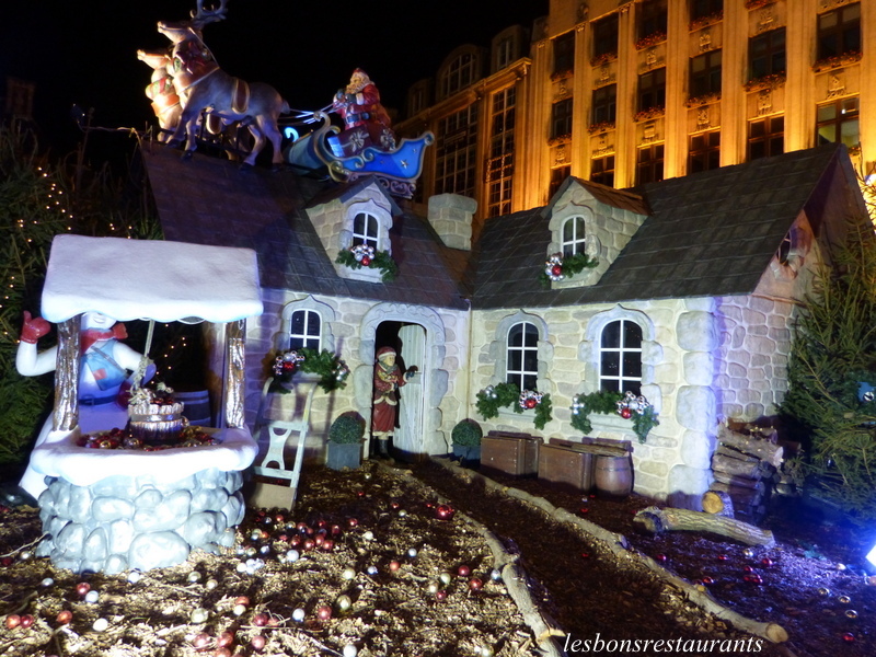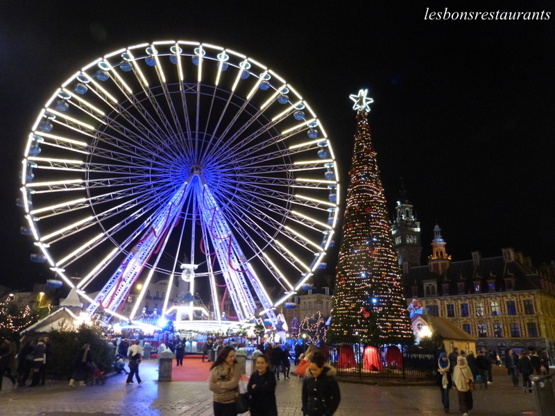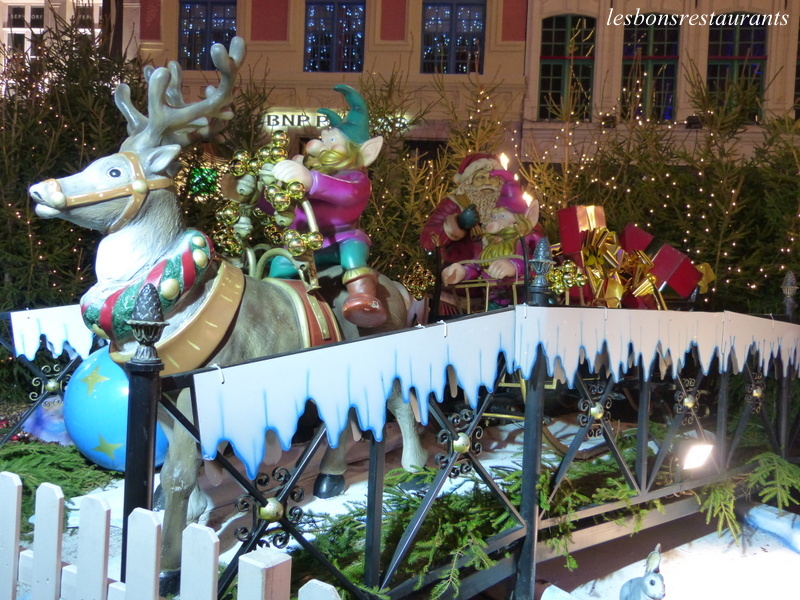 | Les yeux écarquillés par tant de merveilles....Et le marché de Noël étant fermé le soir....Nous avons décidé de poursuivre la magie de Noël de Lille lorsque la nuit tombe.... Vous pouvez voir ou revoir notre balade découverte de Lille en cliquant sur ce lien. Cliquez sur les photos pour les agrandir! Vous êtes prêtes mes amies....Marie et Sylviane sont en forme...Nous pouvons y aller! La grande roue de Lille....elle se détache, toute illuminée, sur le ciel sombre! Nous avons bien du mal à détacher notre regard de cette superbe attraction! Une boule scintillante sert de point d'attache....il ne faut pas se perdre dans la nuit! Au pied de cette roue....un village! Un village...Oui! Mais pas n'importe lequel! C'est le village de Noël! Madame Noël se prête au jeu des photos....Aussi gentille que son célèbre mari...elle nous propose un chocolat chaud! Les immeubles sont tous illuminés et la magie opère...une fois de plus! Tous les personnages sont réunis pour nous accuiellir..... Même le père Noël est là.....Il se prépare, tout doucement, à sa grande tournée! À demain!