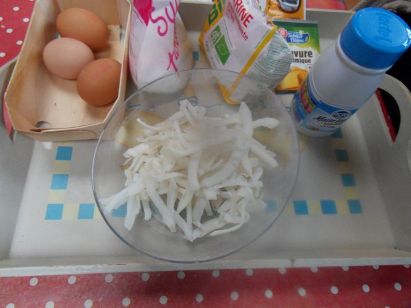 mélangez les ingrédients les uns avec les autres, mettez dans un moule( àcake ou à manqué) et faites cuire 45mns au four.