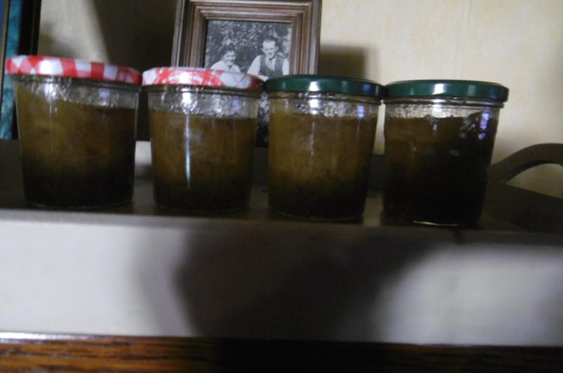 ce matin 4 pots de confiture de rhubarbe, que j'ai laissé macérer toute la nuit avec