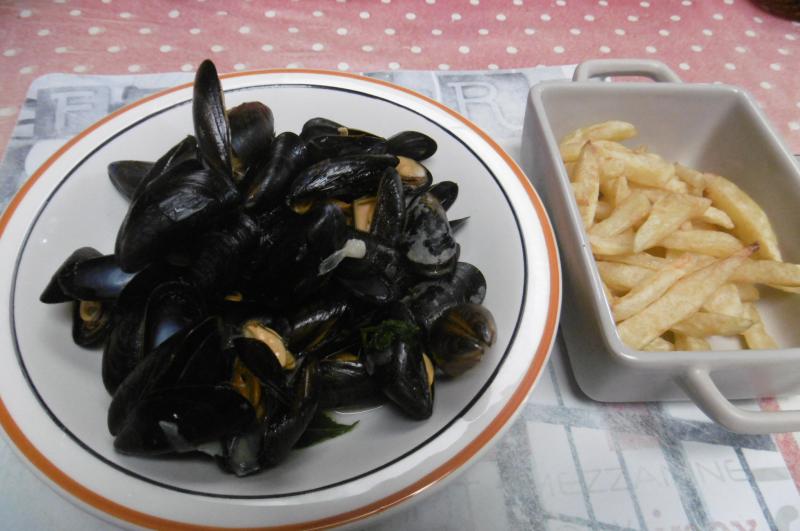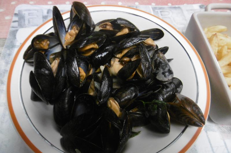 vin blanc, cuire 5 mns à feu vif, j'usqu'à l'ouverture des coquilles!