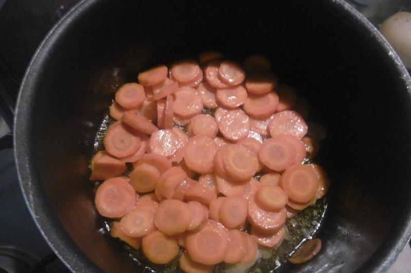carotes vichy, coupées fines en rondelles avec la mandoline, faire revenir avec un bon morceau de beurre, de l'eau cuire 40mns doucement, ajoutez un peu de