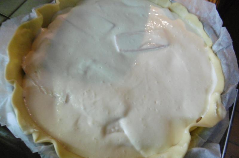 enlever la croûte de maroilles(moi je l'ai gratté) et le couper en tranches, déposer sur la pâte, mélanger l'oeuf, la crème, le lait sel et poivre sur le maroilles.