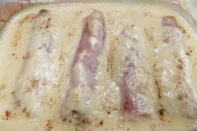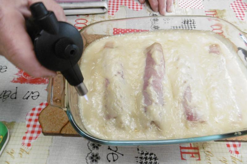 un bocal de poireaux, jambon, sauce béchamelle avec emmental!