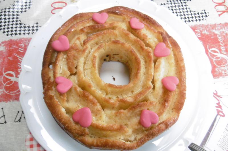 mélanger tout simplement les ingrédients dans l'ordre, çi dessus, verser la pâte dans le moule, enfourner 30mns à 180°.