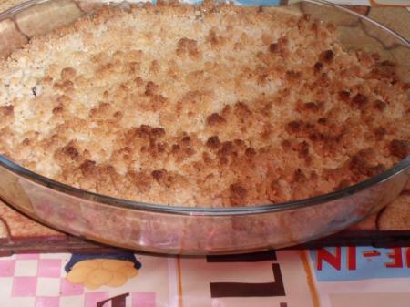pour la pâte, dans un saladier, trvailler rapidement la farine, les amandes en poudre, la cassonade et le beurre mou, de manière à obtenir un sable grossier