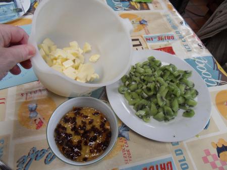 8 kiwis,2càsoupe de raisins secs, 2c à soupe de marmelade d'orange, 2 c à soupe
