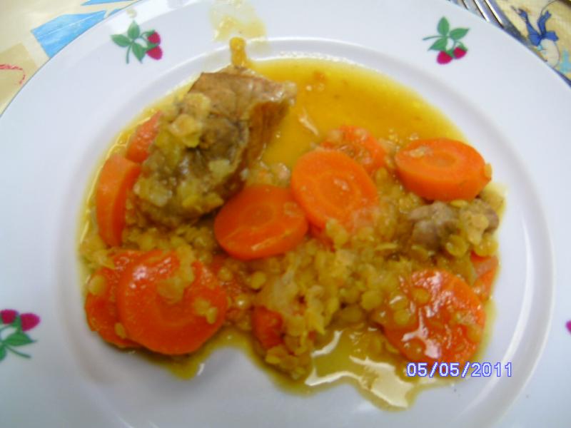 Sauté de porc aux lentilles corail et carottes