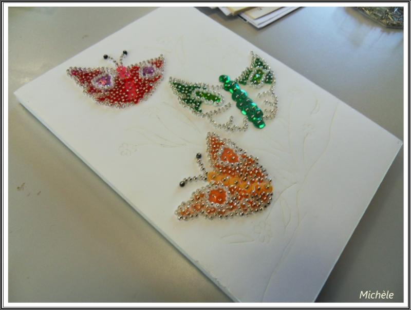 hier je suis retourner au club des 3D! travaux manuels et retrouvailles! inscription pour un petit voyage en Octobre à Tournai j'ai achetée de la laine avec des boules vous connaissez? on peut faire de petite couverture pour Lando! une nouvelle tres dynamique,ma expiquée le point d'ananas au crocher! j'ai photographier les cartons plumes avec des perles! bon apres-midi!!!