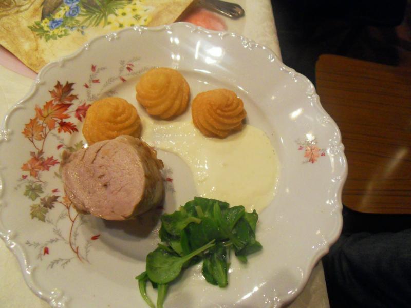 le plat est prêt, la sauce onctueuse, acompagnés pomme de terre dauphines,