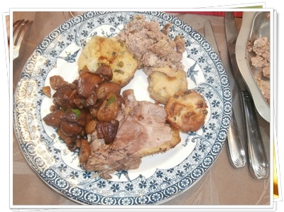 tout d abord une assiette "foie gras" maison bien sûr, accompagné d une compoté d oignon, de confiture de figue, du pain d épice fait par Aurore