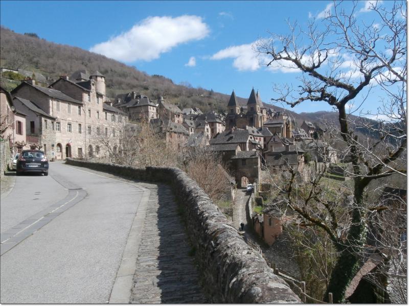 nous voici partis à la découverte de Conques charmant petit village situé au Nord de Rodez au confluent de 2 petites rivières au fond d un cirque en forme de coquille d où son nom - Classé au Patrimoine Mondial de l Humanité en 1998 il fait également parti des plus Beaux Villages de France -