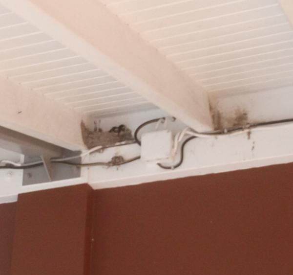Depuis que nous sommes à Ronce le matin en passant devant le restaurant j entendais des piaillements et ce matin munie de mon appareil photo j ai pu enfin trouvé les "responsables" : une belle nichée de petites hirondelles bien cachées en haut de la poutre