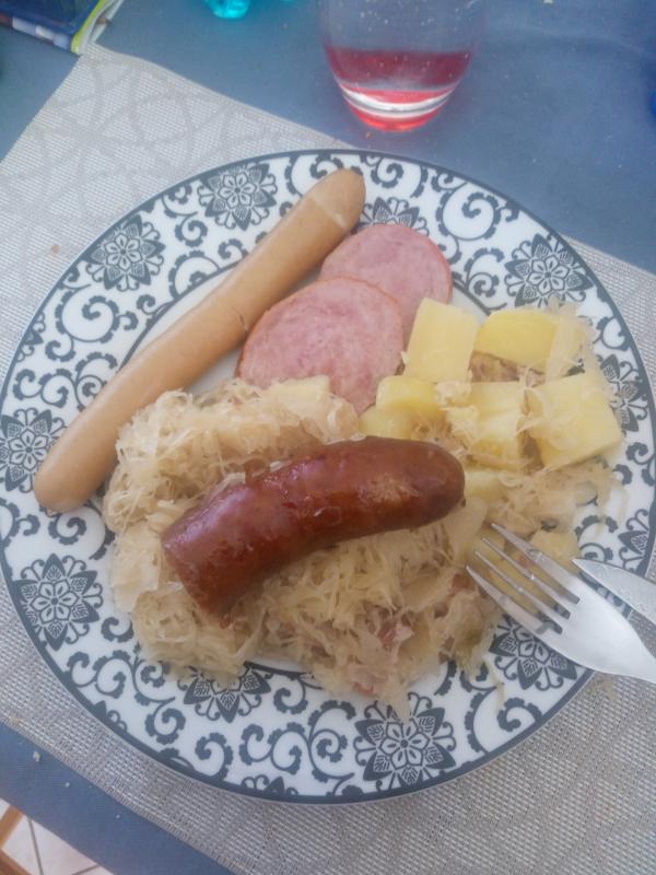 C est la 1ere de la saison comme d habitude j ai pris de la choucroute crue que je fais cuire doucement sur la plaque électrique et complète au fur et à mesure