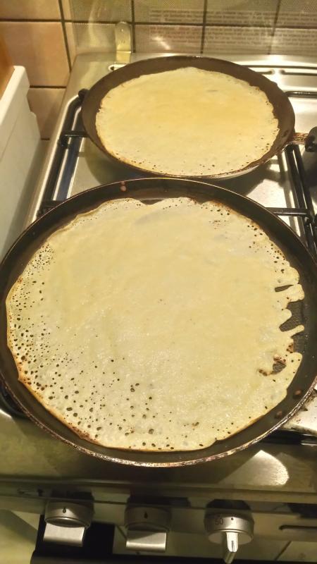 Hier j ai fait comme tout le monde, j ai préparé mes crêpes tout d abord avec mon nouveau robot c est bien plus facile pour bien lier la pâte et cette année j ai un peu innové en rajoutant de la farine de chataigne ramenée lors de nos dernièr passage en Ardèche