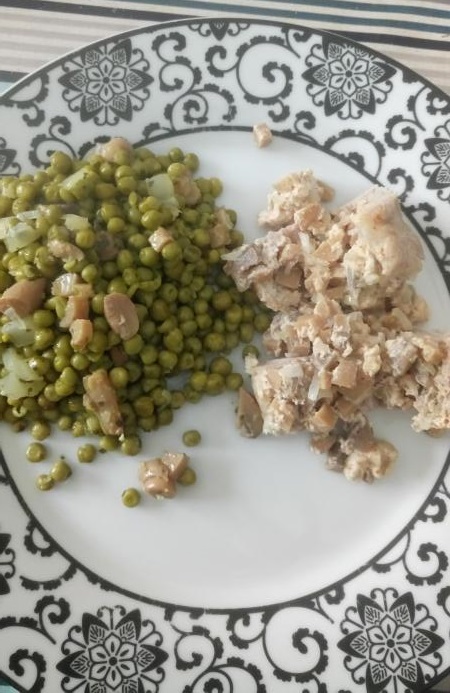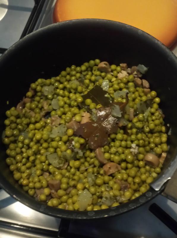 j ai servi avec des petits pois en conserve cuisinés à l oignon et feuille de laurier