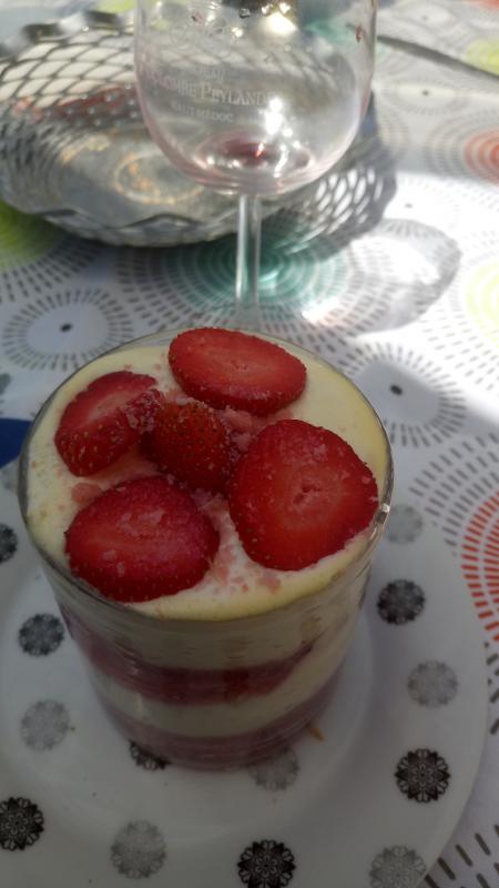 coulis + fraises + biscuit + crème et ainsi de suite jusqu en haut du contenant