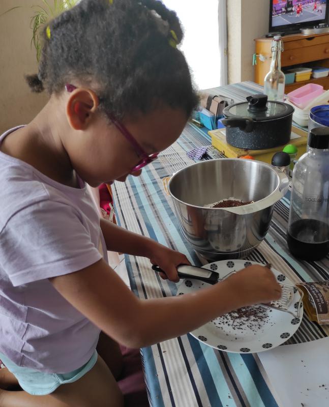 Ce jour là séance cuisine à quatre mains pour préparer les cookies du goûter