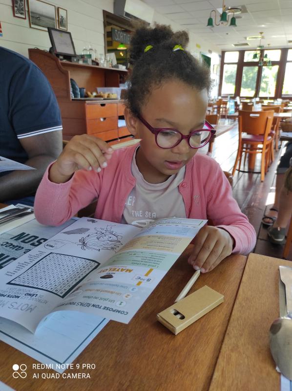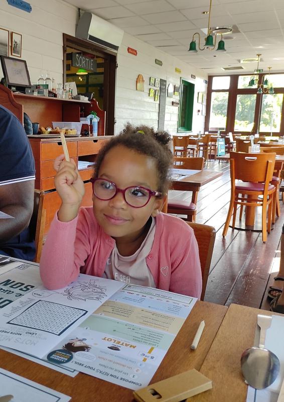 Ce jour là nous étions allés faire des courses à Bordeaux donc un petit restau s imposait nous sommes allés chez LEON et mademoiselle a eu droit à un petit intermède pour patienter en faisant des jeux