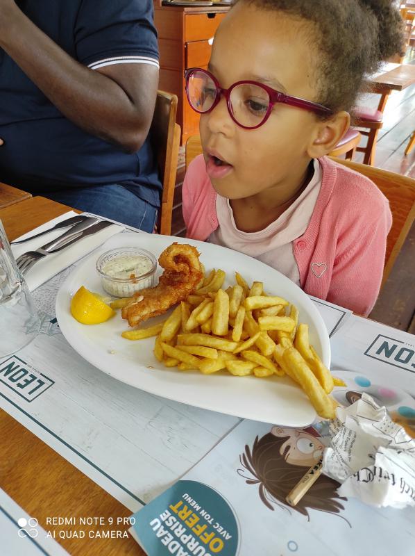 la récompense : un fish and chips bien copieux qu elle a dévoré