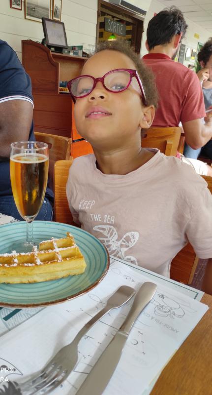 et pendant qu on dégustait nos cafés gourmands, Mademoiselle avait droit à une gauffre avec un petit verre de champomy!!!!!!!!!!!!