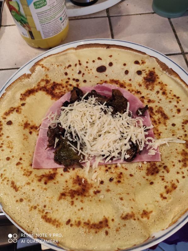 puis la garniture aux champignons, un peu de gruyère rapé