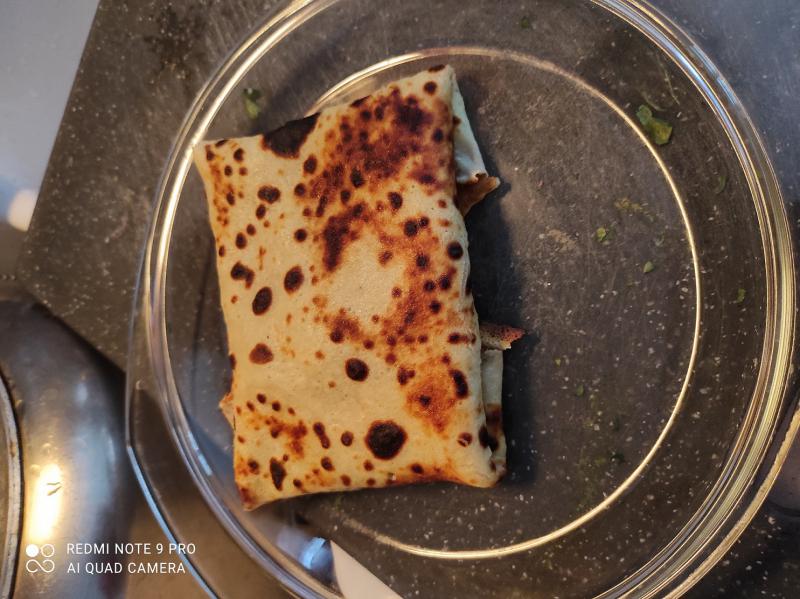 et j ai plié en "baluchons" et j ai renouvellé l opération pour avoir 6 crèpes chacun, et les maintenant au chaud dans mon four