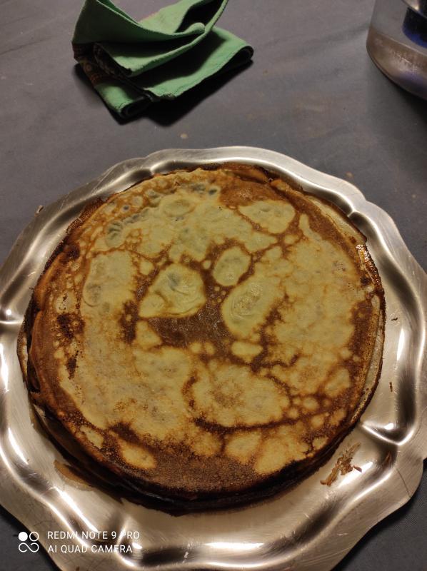 puis j ai continué à cuire mes crêpes un peu plus fines pour les faire en dessert que nous avons mangé le soir avec de la confiture, du sucre, ou de la pâte à tartiner selon l humeur!!!!!!!!!!!!
