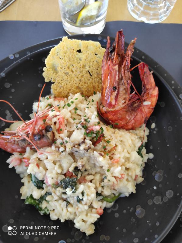 autre petit restau : un rizotto au noix de pétoncles et crevettes très crémeux et goûteux