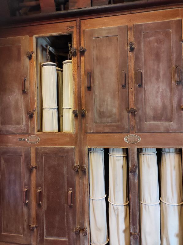 la visite commence par le hall qui abritait autrefois la livraison du grain et ensuite l expédition des sacs de farine obtenus - une belle exposition de tous les sacs qui ont pû transiter par ce lieu lors de la livraison qui ont été retrouvés lors de la remise en état