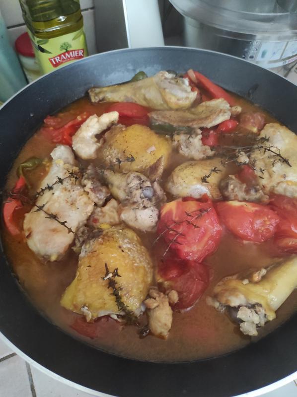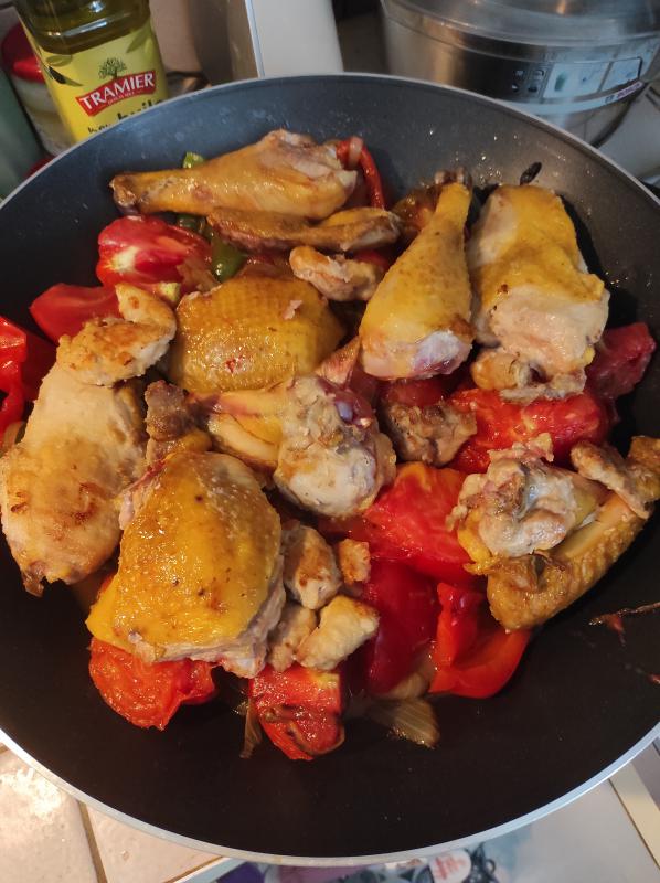 Il faut profiter de la belle saison, avec des tomates et de poivrons et aussi un peu de monde!!!!!!!!!!!!!!!!! pour réaliser ce poulet basquaise