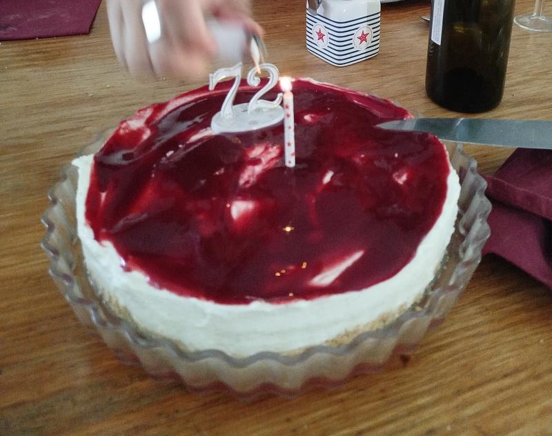 après un bon repas concocté par ma fille : tomates/mozza - roti de boeuf/légumes du jardin - salade/fromages elle avait fait un cheese cake au coulis de fruits rouges
