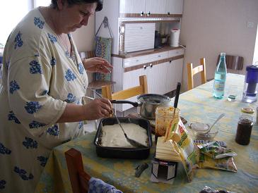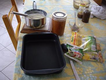 lors de la tempête de janvie j avais fait des conserves de "bolognaise" pour mes gourmands de lasagnes et j avais bien fait car samedi mon fils m a téléphoné pour savoir s il pouvait venir passer le dimanche à la maison avec ses enfants et son chien car sa femme était partie en Italie pour un séminaire de boulot et donc ils étaient seuls - bien sûr j ai pensé à faire des lasagnes et cela a été d autant plus facile puisque je n avais que la béchamel à préparer et à monter le plat