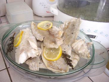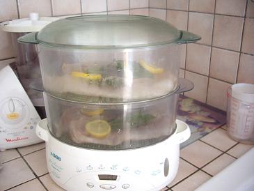 hier midi j ai fait du poisson, j en fais rarement car je ne supporte pas de cuire du poisson, cela me coupe l appétit, alors pour atténuer les odeurs je l ai cuit au cuit-vapeur