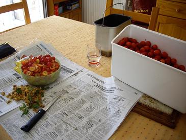 et nous avons ramené des mirabelles avec lesquelles j ai fait ma 1ère confiture à la map - mais vu la quantité de fruits j ai aussi fait une bassine plus classique - - 1ère étape dénoyauter les fruits - les peser - rajouter le sucre et mettre à "mouliner" -