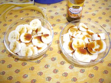 - couper les bananes en rondelles dans une coupe