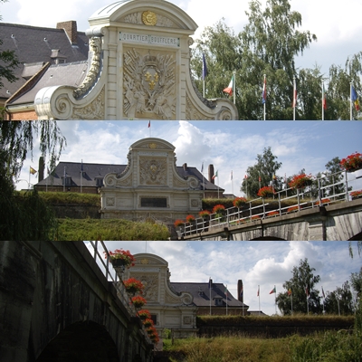 à travers les petits squares nous avons rejoint le parc de la Citadelle (rappelez vous mon 1er indice) mais malheureusement nous ne pouvons pas la visiter car elle est occupée mais nous faisons un tour dans les douves transformées en promenade - il y a également un petit zoo - une petite aire de manèges pour les enfants, un superbe jardin aménagé : le jardin Vauban bien sûr en hommage à ce génie de la construction militaire - la Citadelle forme comme une ile au mileu de la rivière La Deule