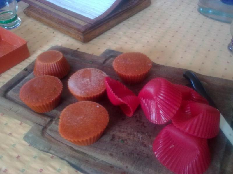 c est tout simplement du coulis de tomates cerises que j ai préparé pour accompagner mes pâtes mais comme je suis la seule à en manger j ai eu l idée de congeler le reste dans mes moules à muffins avant de les ranger dans une poche plus grande ainsi quand j en aurai besoin, pour mes pâtes, du riz ou encore dans une préparation quelconque je n aurai plus qu à aller me chercher un "galet" au congélo