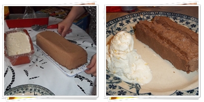 nous dégustons ma bûche "royale" accompagnée d une boule de la bûche glacée à la mandarine