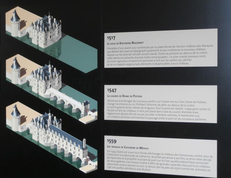 puis celle dite "des Cinq Reines" en souvenir des deux filles et trois belles-filles de Catherine de Médicis qui échangea le chateau en 1559 à la mort de son époux en donnant à Diane de Poitiers le chateau de Chaumont - c est elle continua les travaux du pont on y faisant rajouter un étage de galerie et donner son aspect actuel au chateau