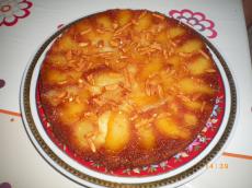 et avant de mettre la patte dans le moule mettes le plat a gâteaux sur votre plaque et faire un caramel 100g de sucre et 4 cuillère a soupe d'eau et laisser brunire et ajouter une noix de beurre et disposer des pomme couper en lamelle et verser votre pâte