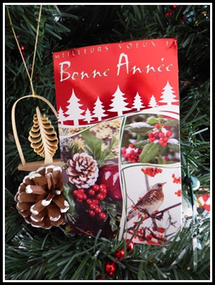 Cette gentille carte de voeux de Ghislaine du blog "Chez Mamy Gigi" a eu une place de choix sur mon sapin.